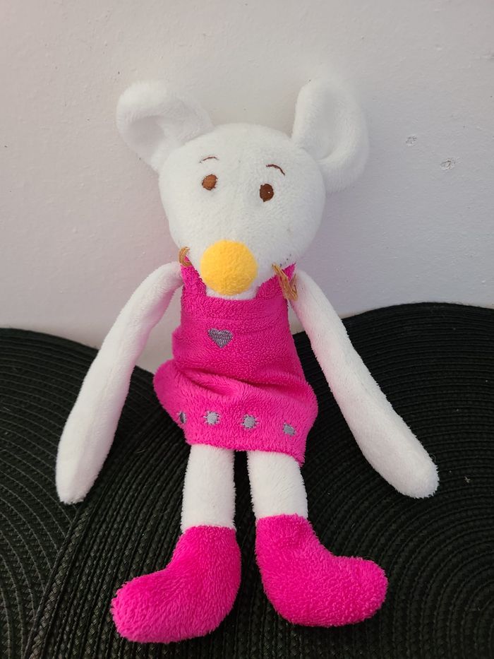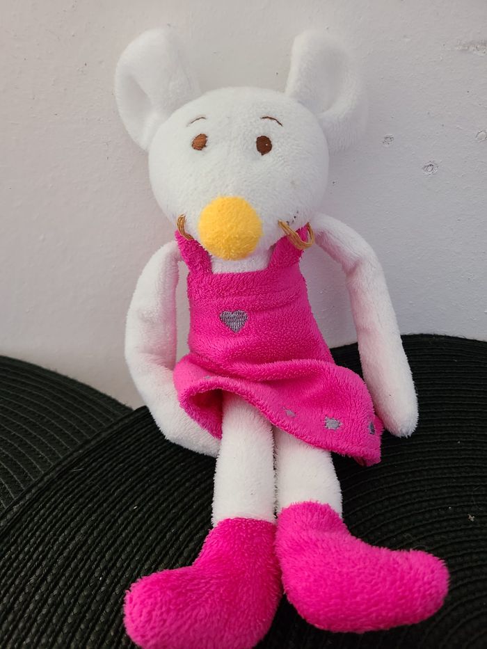 Doudou souris blanche robe rose coeur LASER - photo numéro 1