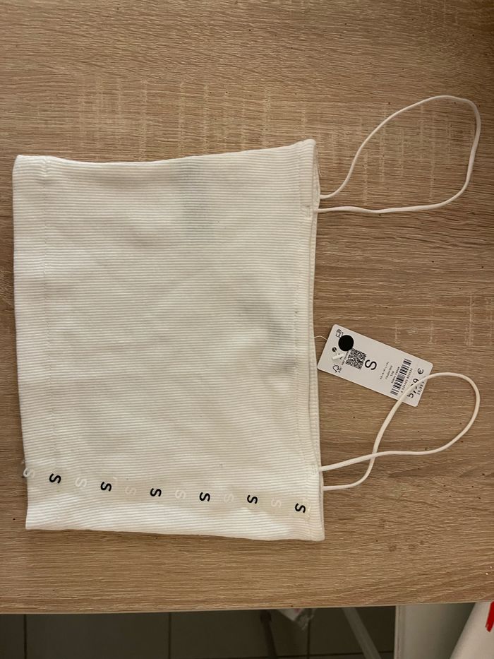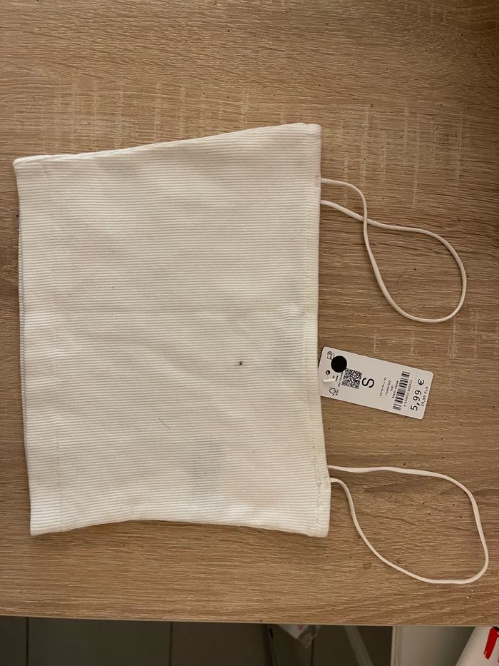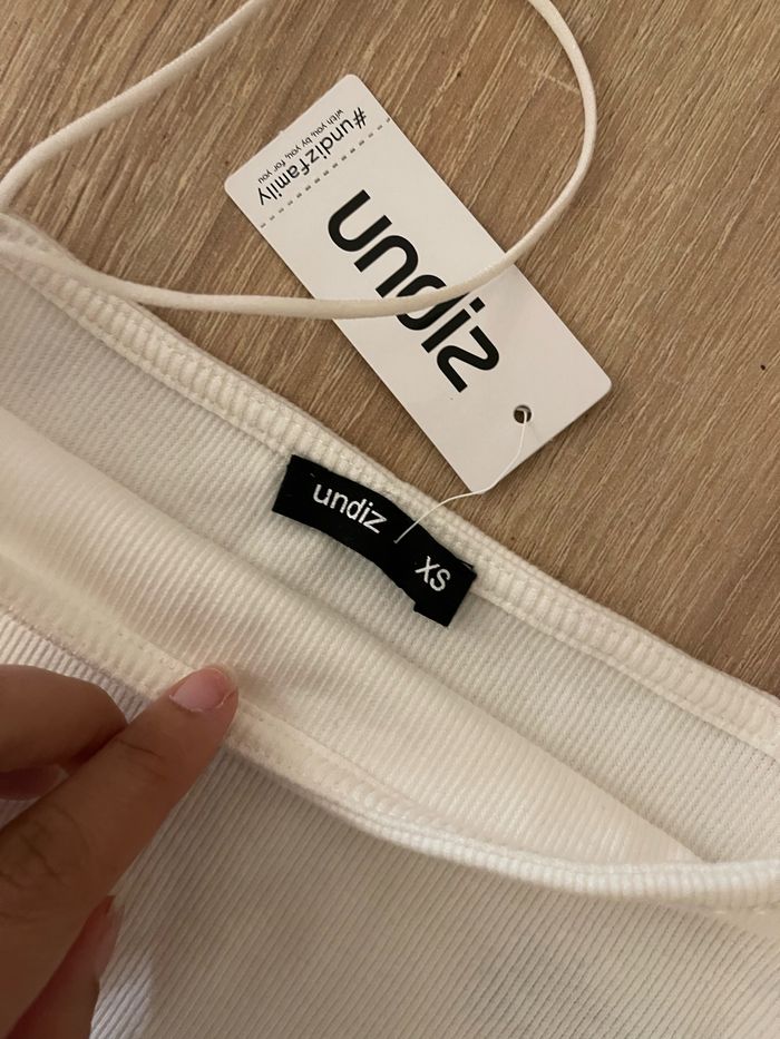 Petit haut bustier blanc de chez Undiz en taille XS Taille petit Un tout petit point noir visible sur le première photo et présent dès l’achat. Neuf avec étiquette