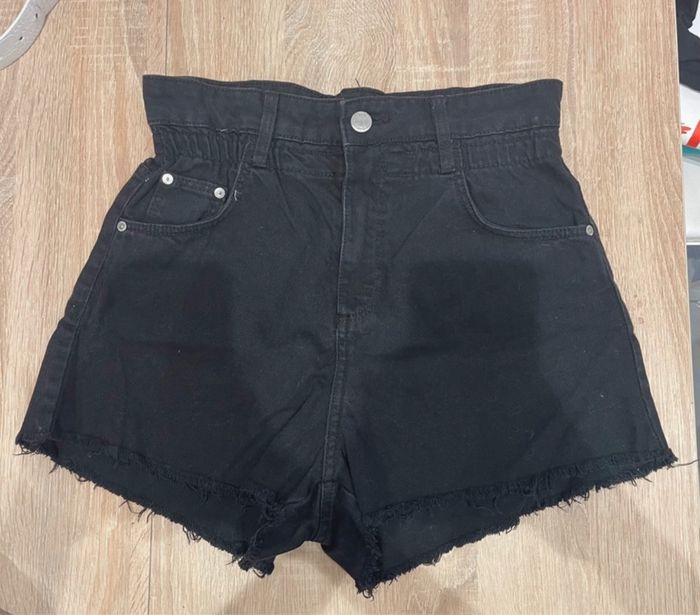 Short en jeans noir taille haute - photo numéro 1
