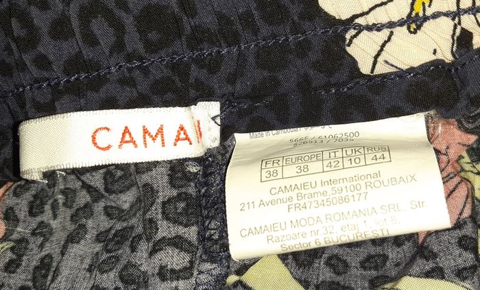 Pantalon fluide Taille 38 Camaïeu Bleu marine et fleuri Très bon état