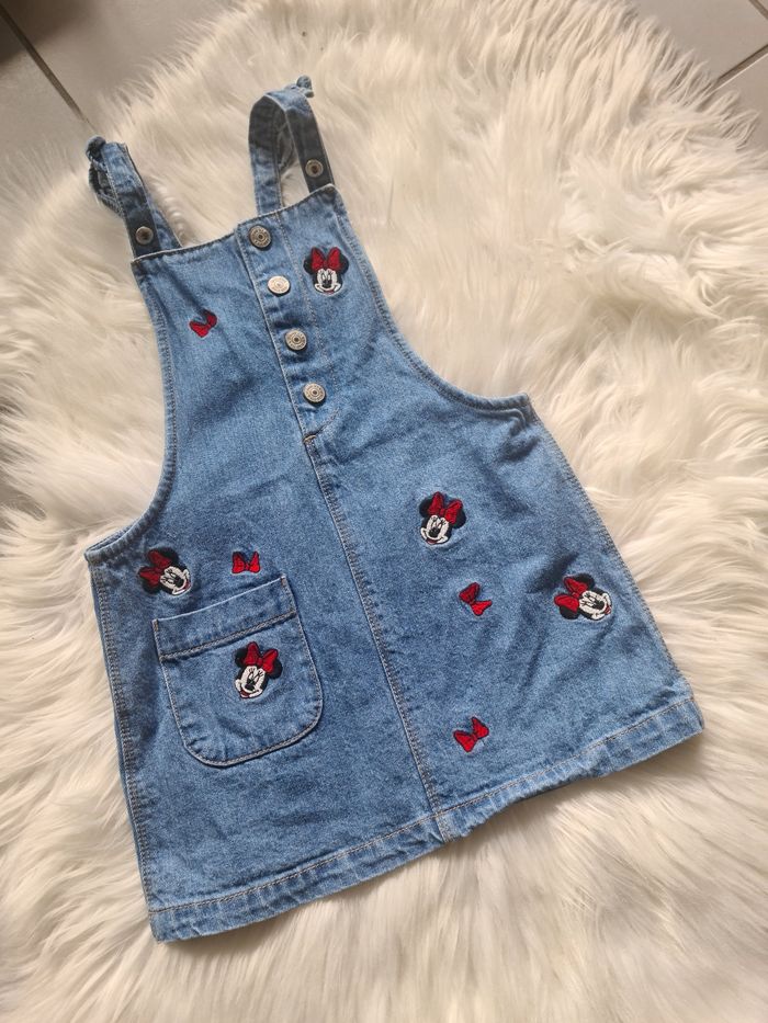 Robe salopette en jeans a motifs minnie Disney 3ans Comme neuf