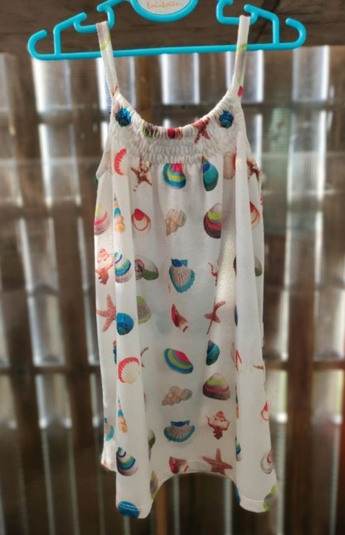 Robe a bretelles a motifs coquillage de chez C&A collection palomino. Fluide et légère Taille 116 (6 ans) Peu porter Ni tache ni trou