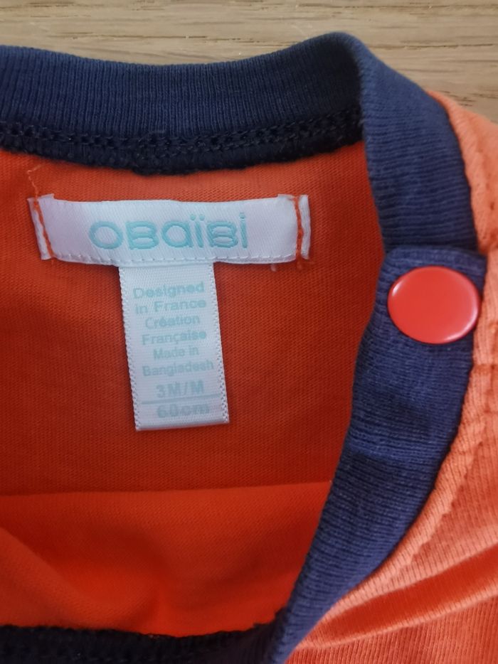 T-shirt à manches courtes bébé garçon 3mois obaibi en très bon état - photo numéro 2