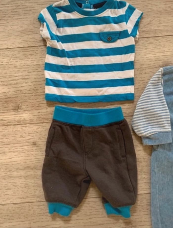 Lot de 5 vêtements 1 mois garçonen très bon état : - 1 pyjama - 1 bas de jogging avec 1 t-shirt assorti - 1 pantalon souple beige et haut manches longues #garcon1moisjosh