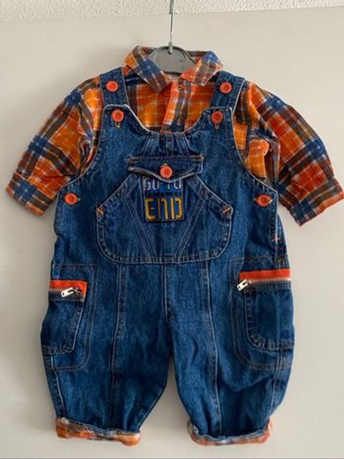 Ensemble 3 mois manteau + salopette et chemise