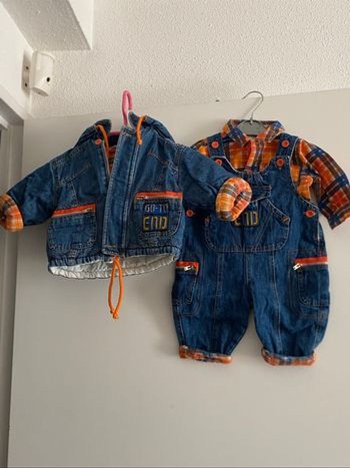 Ensemble 3  mois manteau + salopette et chemise - photo numéro 1