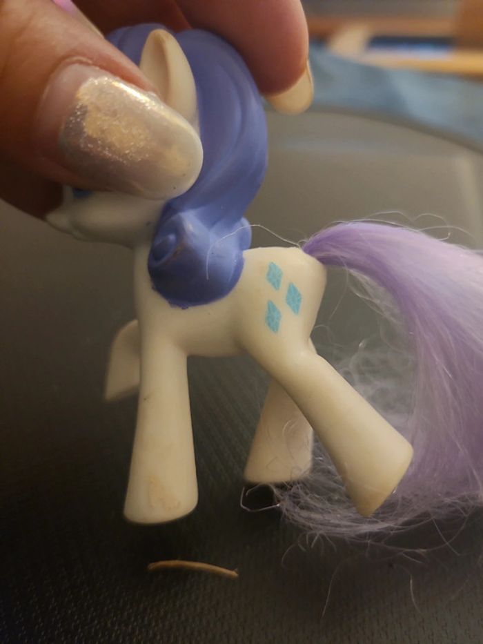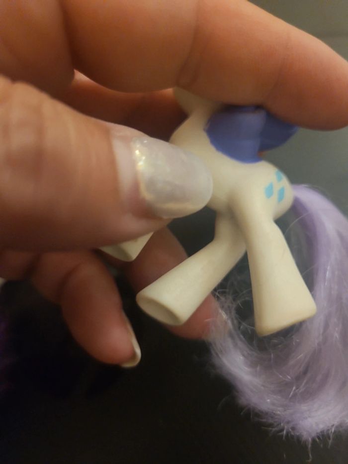 ⬇️mes autres annonces de jeux et jouets👉 #cg89jouets 😁 réductions activées des 2 articles ! un petit poney licorne avec une crinière et une queue à coiffer violette. un tatouage sur le dos en forme de losange. En bon état #petitponey #licorne #coiffer #tatouage