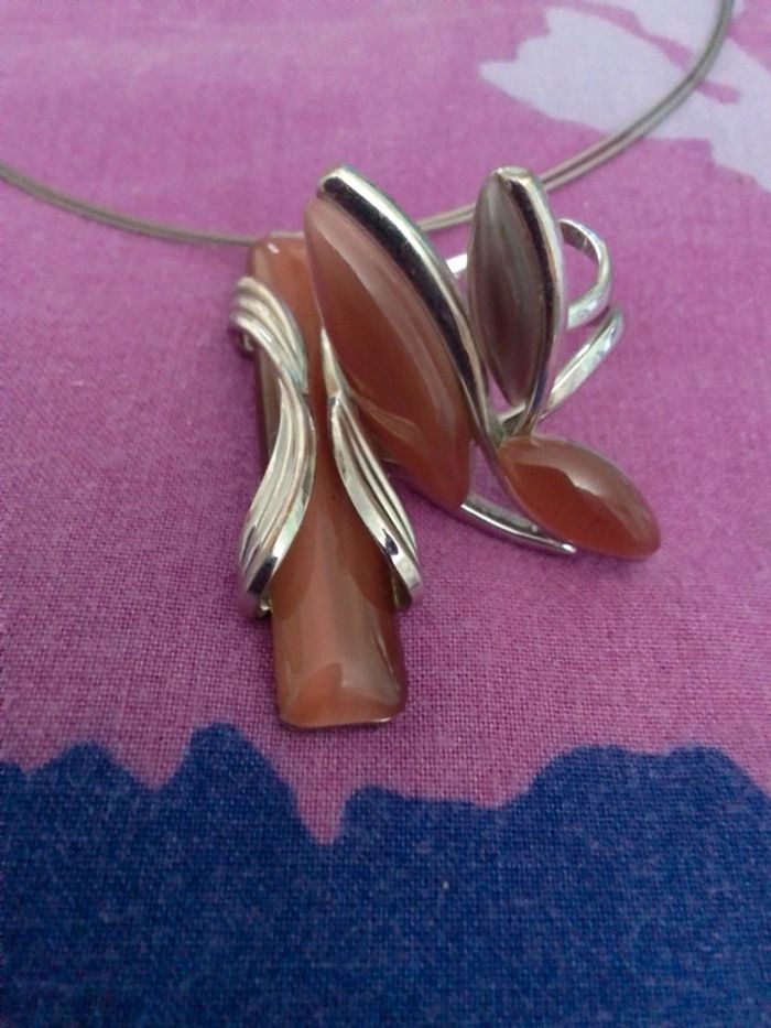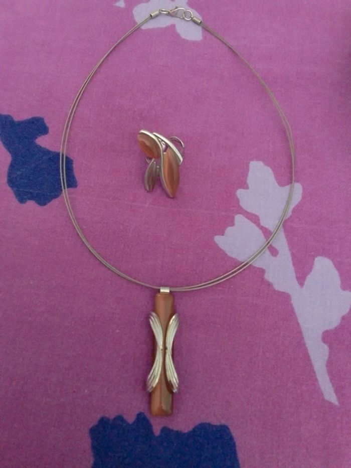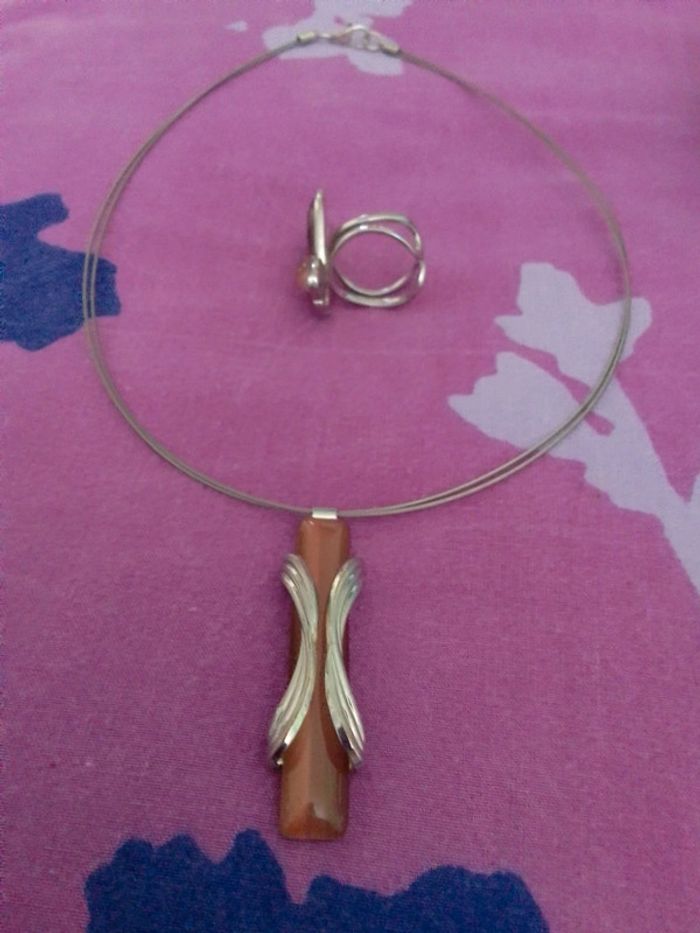 Très joli ensemble bijoux : 1 collier et 1 bague ajustable . Couleur taupe et argenté . Très jolie 👍🌸