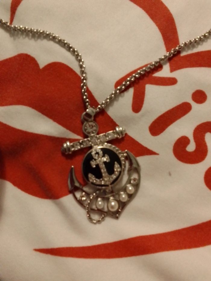 Très jolie collier avec pendentif encre de marine et strass . Neuf sans étiquette. 🌸