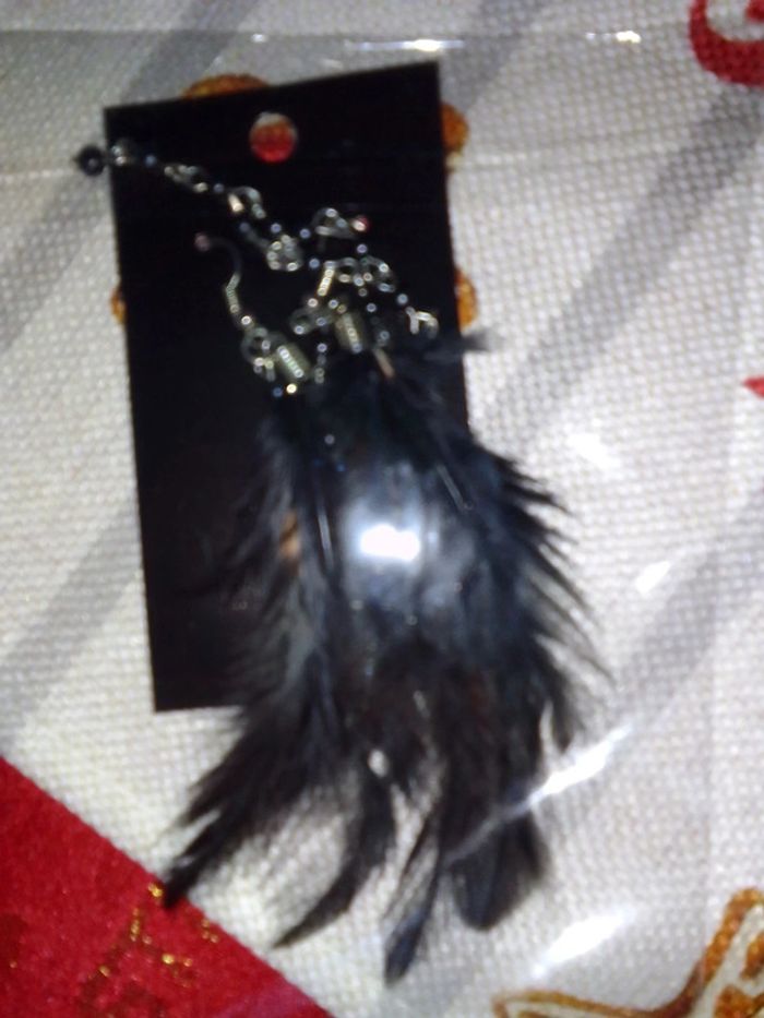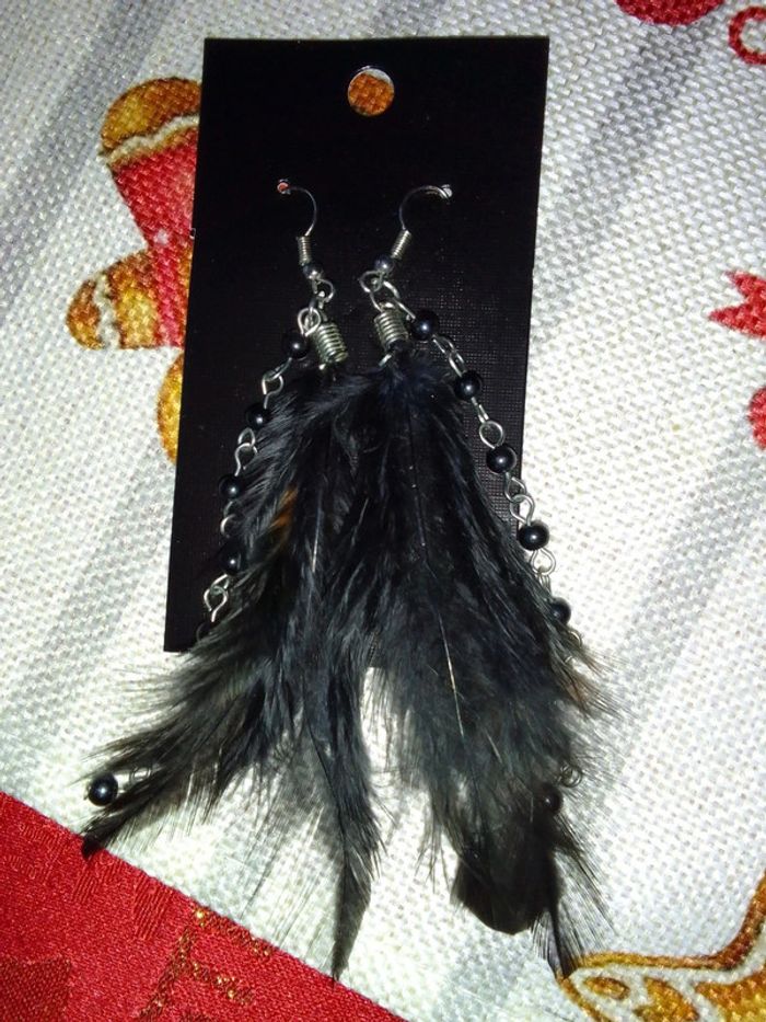 Boucles d'oreilles plumes et perles noir . Pensez au lot 😉jusqu a -50%