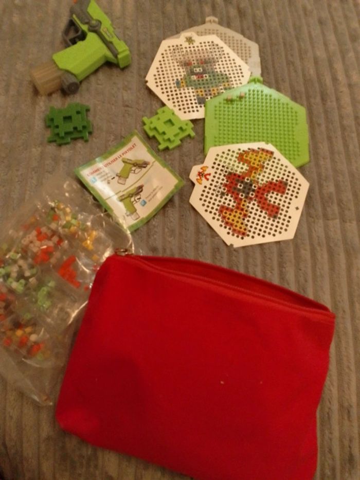 Jeux pix avec pistolet à eau , 2 plateaux et 2 dessins , la trousse a été rajouté pour ne pas perdre les petites perles etc...très bon état , très peu servis . 🌸