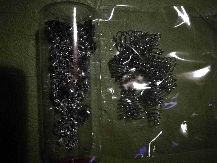Lot de 2 sachets : spirales pour faire des colliers ou autre et déco pour colliers. Très bon état. Pensez au lot 😉