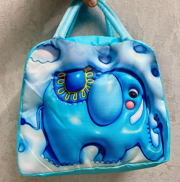 📏 Contenance intérieure: 5L (23x18x12cm) ✔️ taille parfaite pour boite Bento + 1-2 petites bouteilles + 1-2 petits sachets + poche avant) Couleur: Bleu motif éléphant