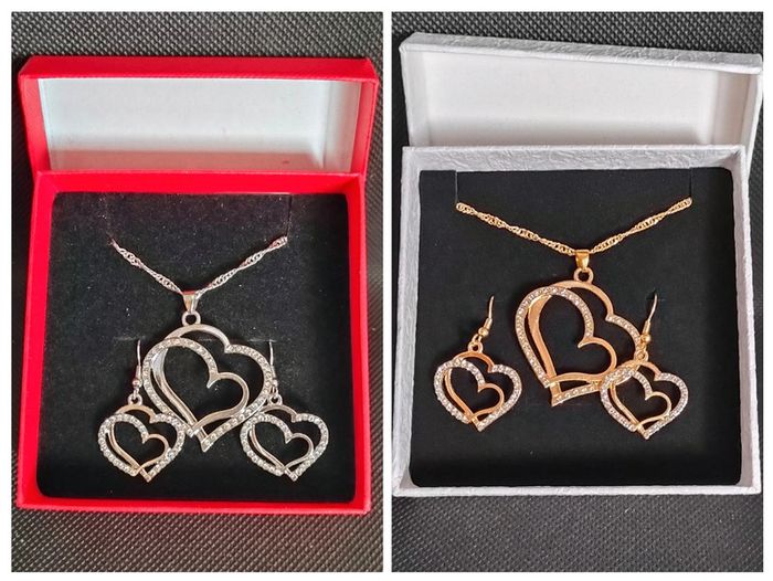 Parure collier boucles d'oreilles coeur Soit argenté ou doré Vendu dans une boîte Neuf 18€ le coffret