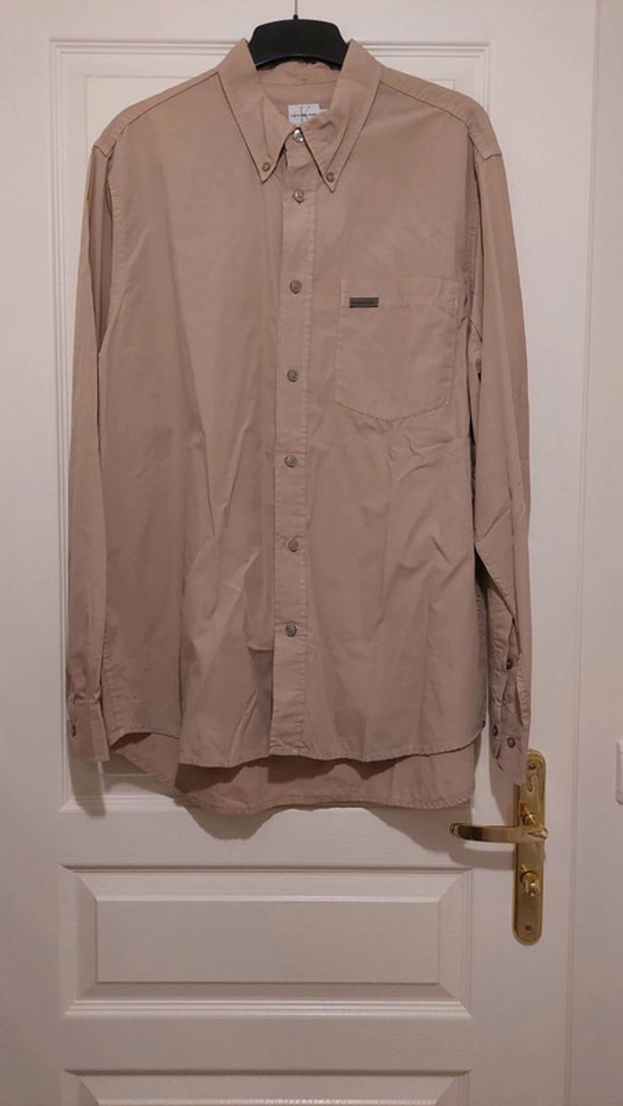 Chemise homme de marque Calvin Klein beige taille L en coton made in Portugal en excellent état