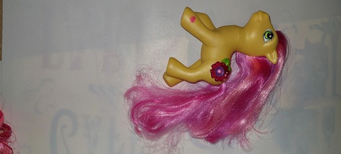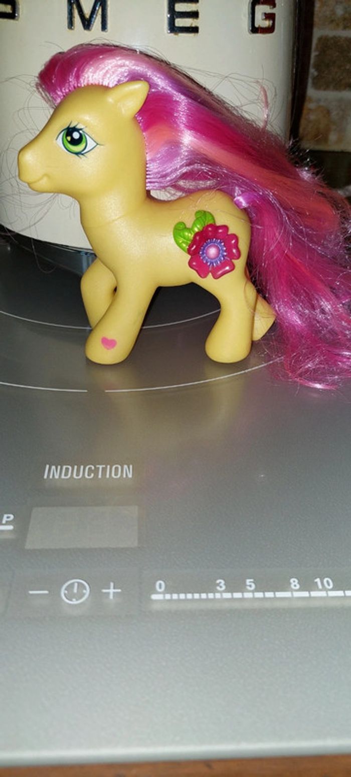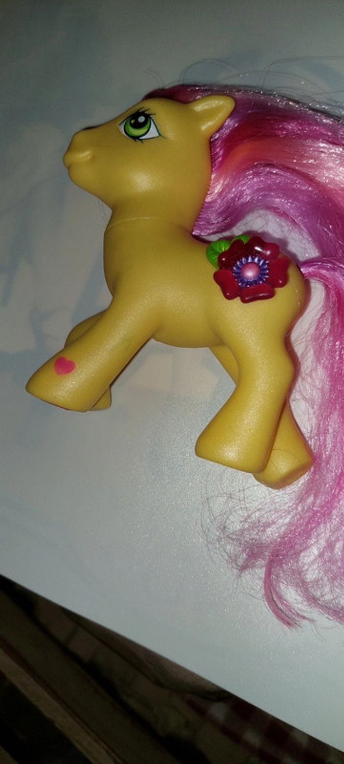 Très rare poney My little pony annee 2006 royal bouquet jaune avec fleur en relief marque Hasbro