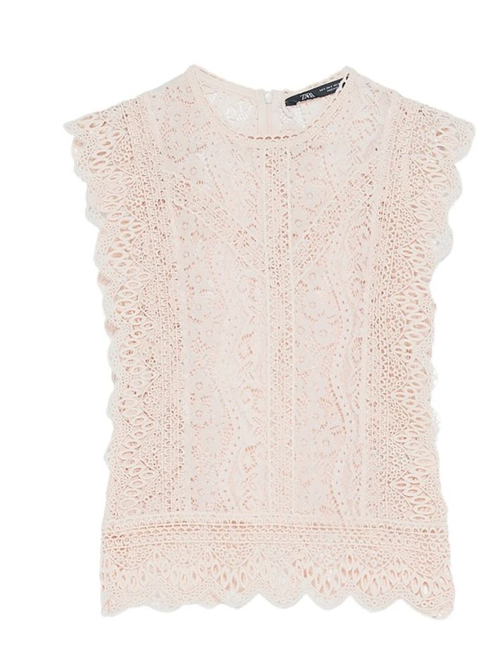 Top en dentelle transparent nude Zara - photo numéro 1