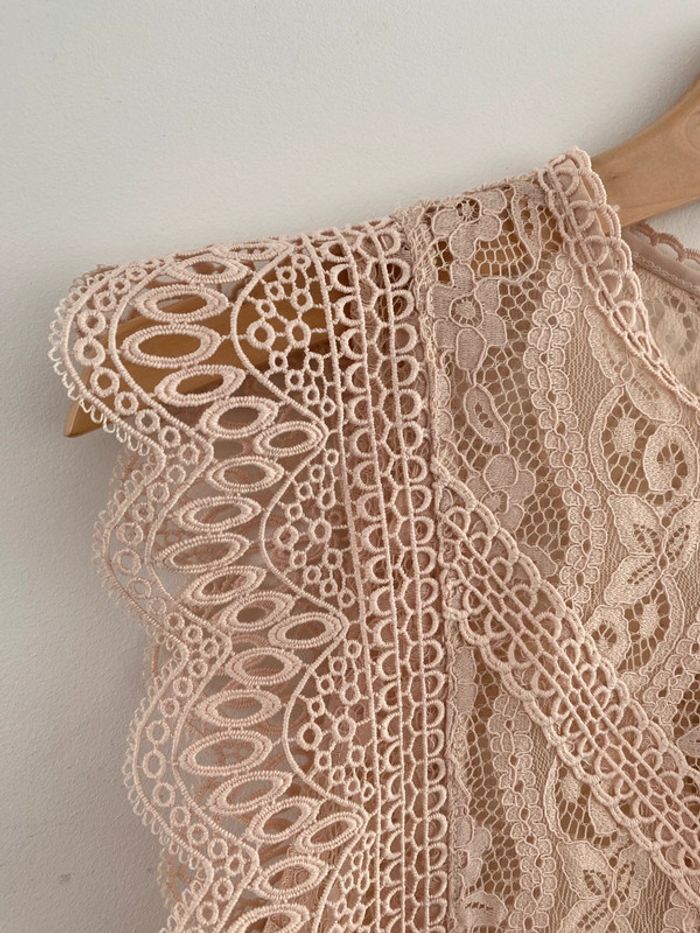 Top en dentelle transparent nude Zara - photo numéro 3
