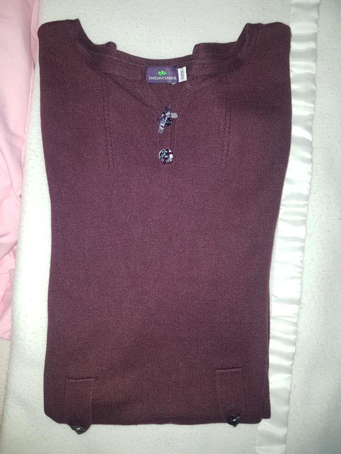 Superbe robe pull de très belle qualité de marque Sergent Major 12 ans couleur bordeaux prune avec 3 étoiles au dos et magnifiques boutons sur le devant. a porter sans ou avec un col roulé en dessous.