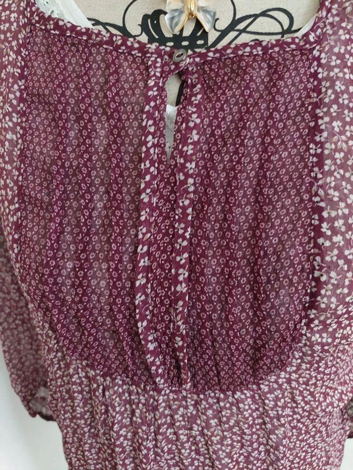 Tunique blouse Armand Thiery Bordeaux trèfles blancs M - photo numéro 5