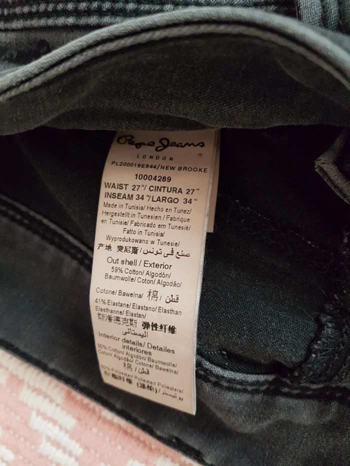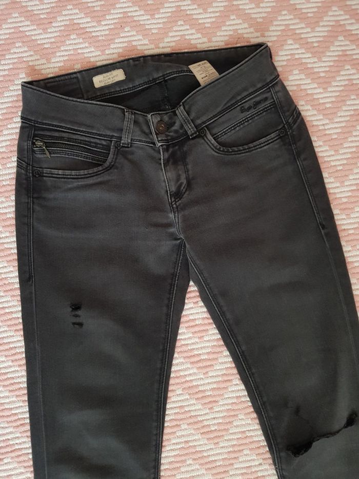 Jean de marque Pepe jeans taille US 27 (36-38) coloris gris foncé used état neuf jamais porté. 5 poches. Coupe slim.