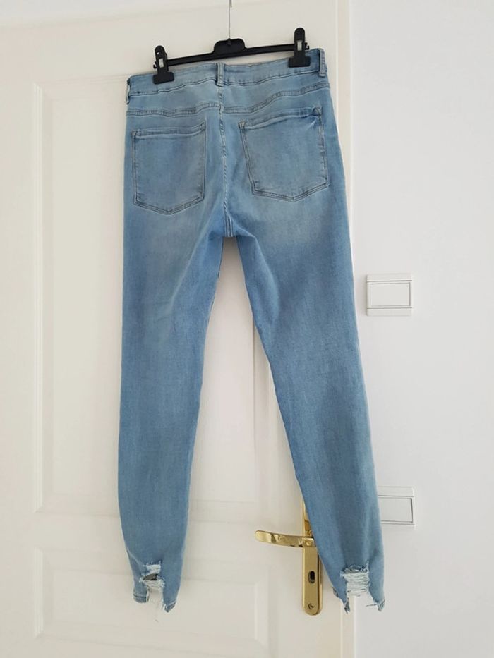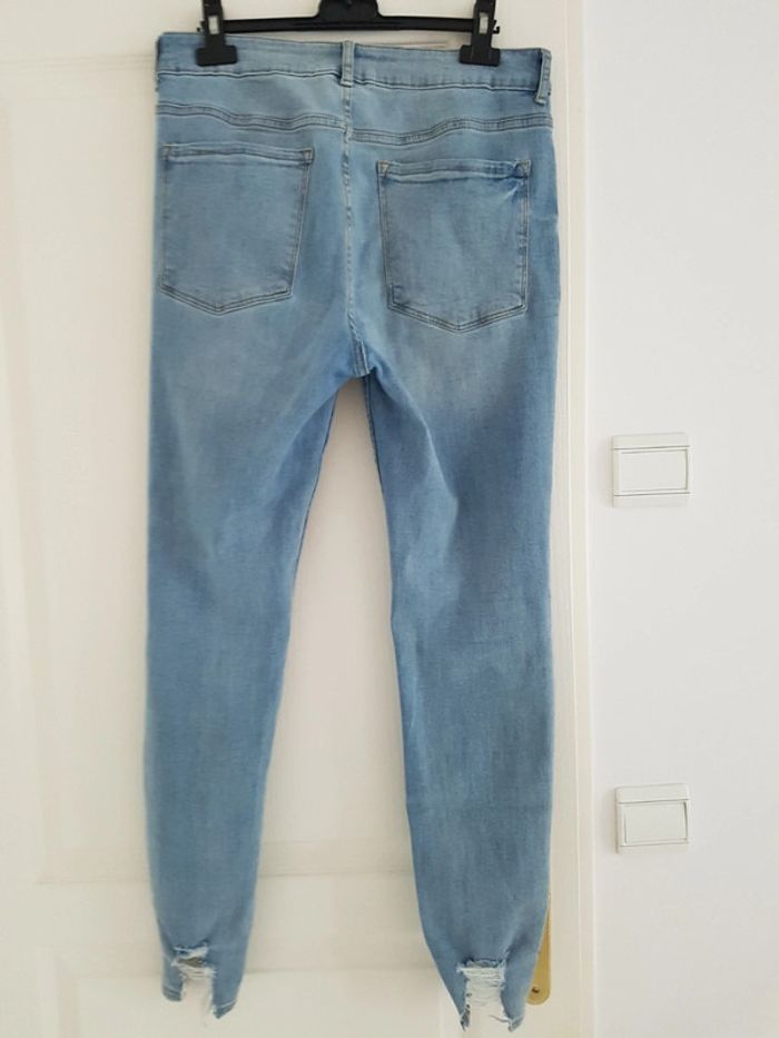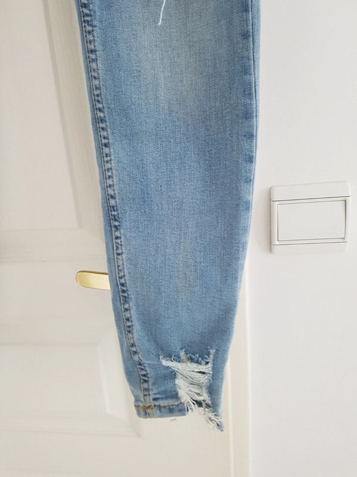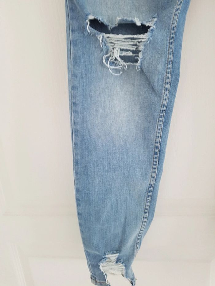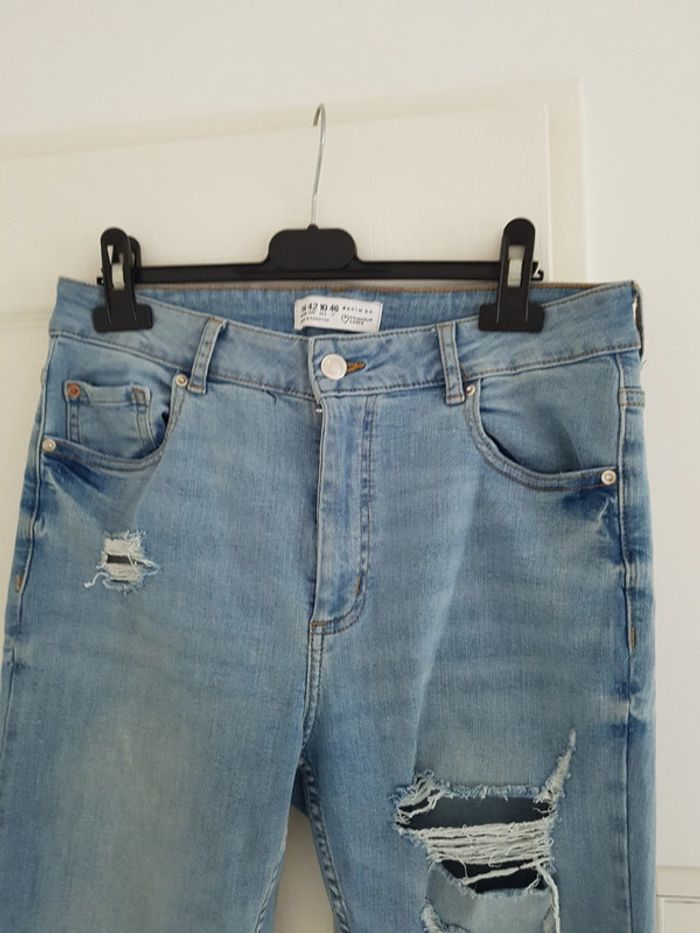 Superbe pantalon en jean bleu délavé used de marque Primark Cares de très belle qualité. Taille 42 qui convient aussi pour du 40