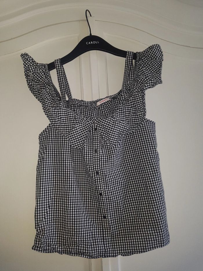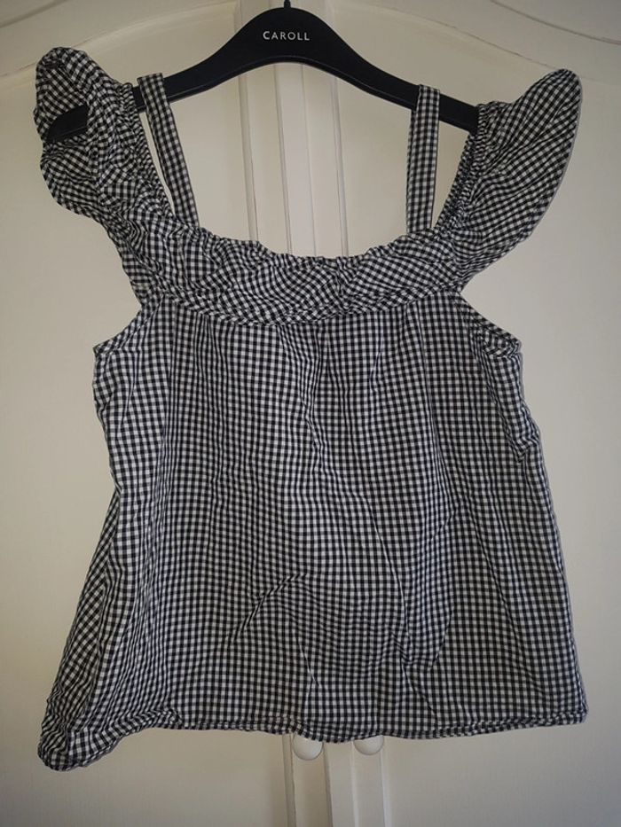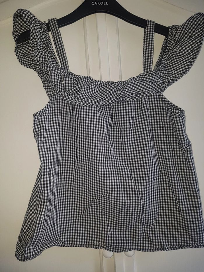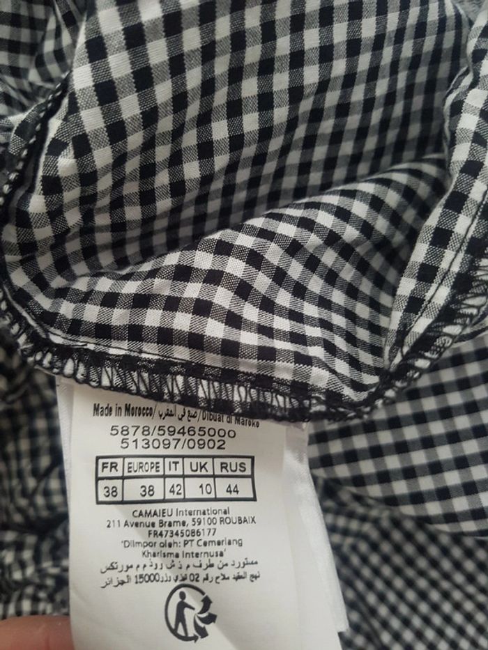Chemise blouse neuve Camaïeu taille 38 à petits carreaux noir et blanc