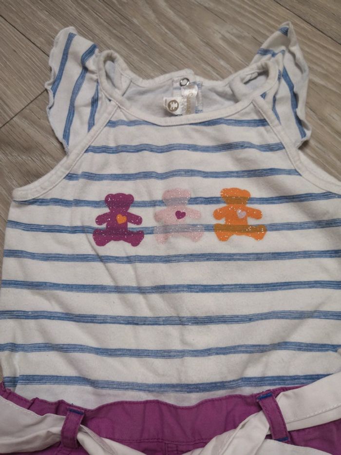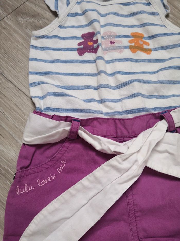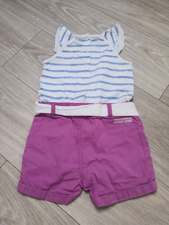 Combishort en excellent état S'ouvre par pressions à l'entre jambe pour plus de praticité Très joli avec avec sa petite ceinture 18 mois