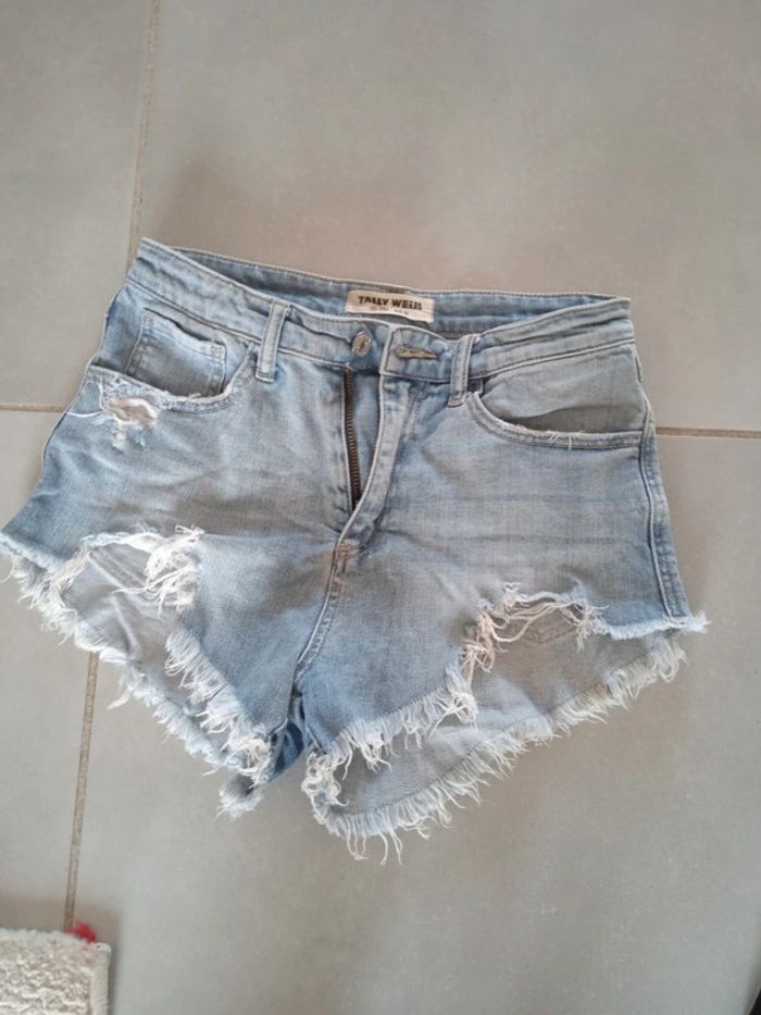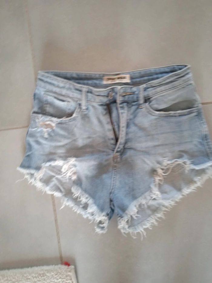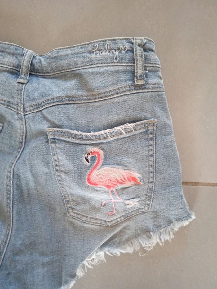 En très bon état motif flamant rose sur la poche arrière, Jean court échancré