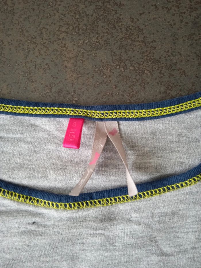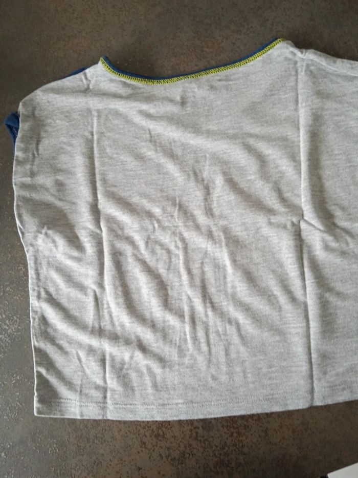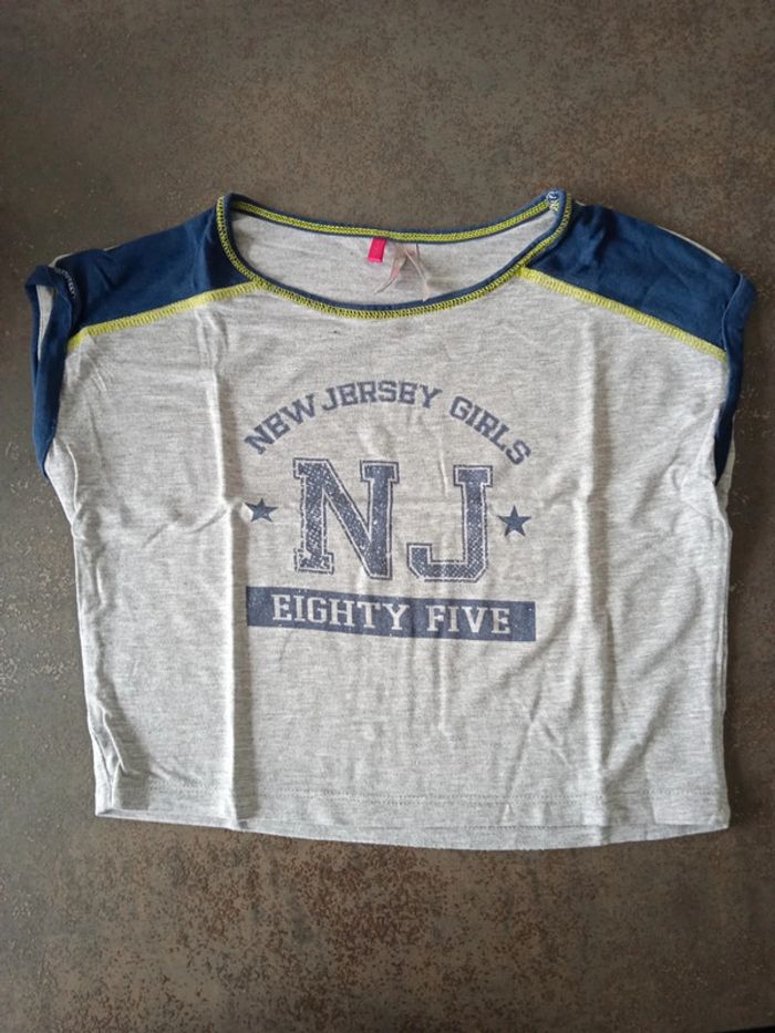 Très bon état t-shirt court gris inscription New Jersey girl New York manche bleu marine