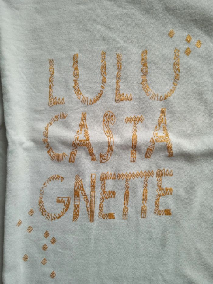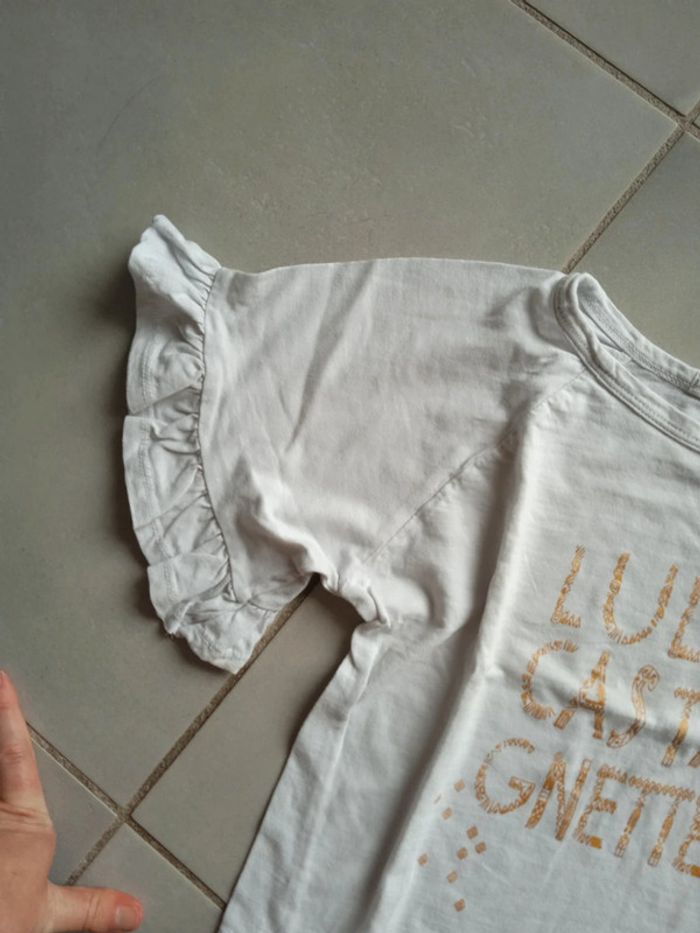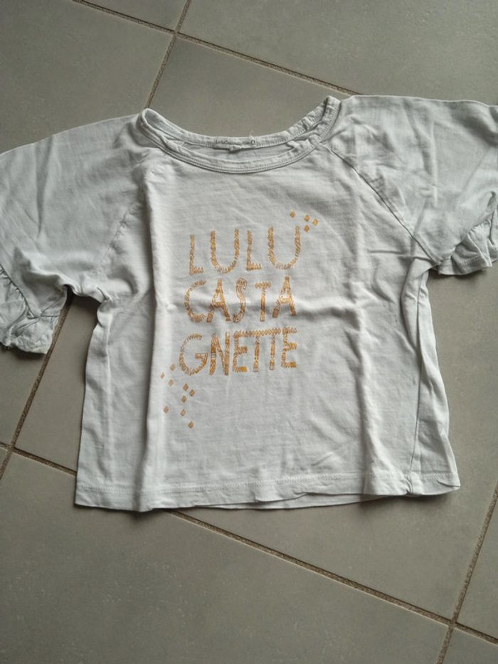 Très bon état t-shirt blanc manche froufrou inscription de Lulu castagnette en doré