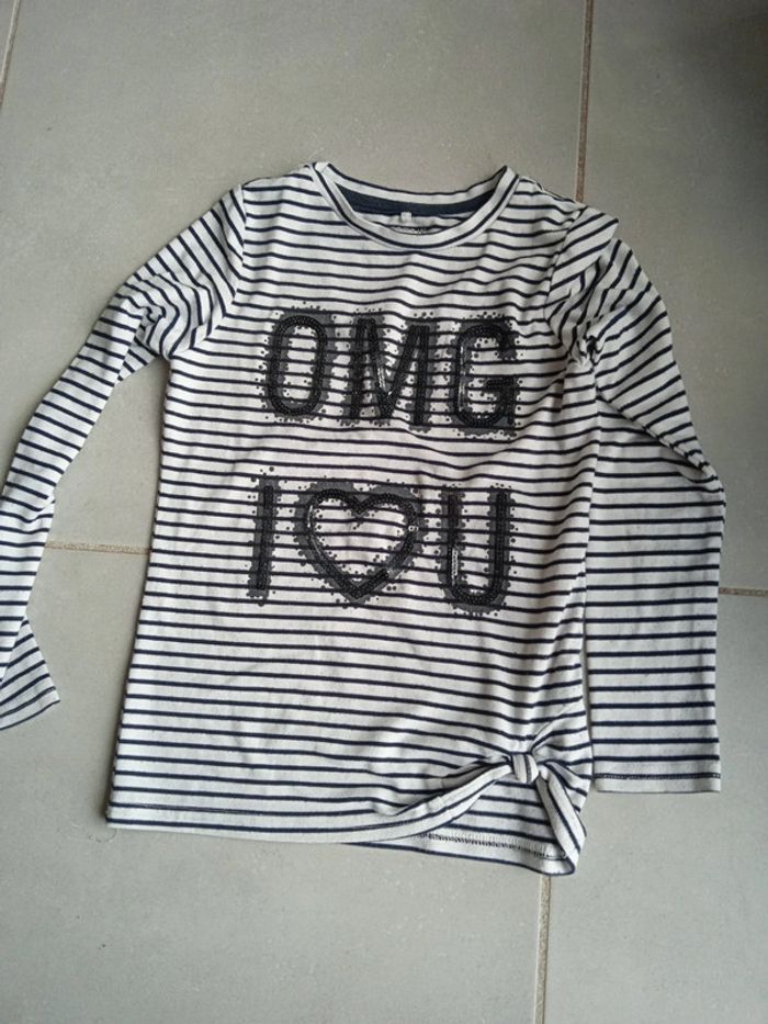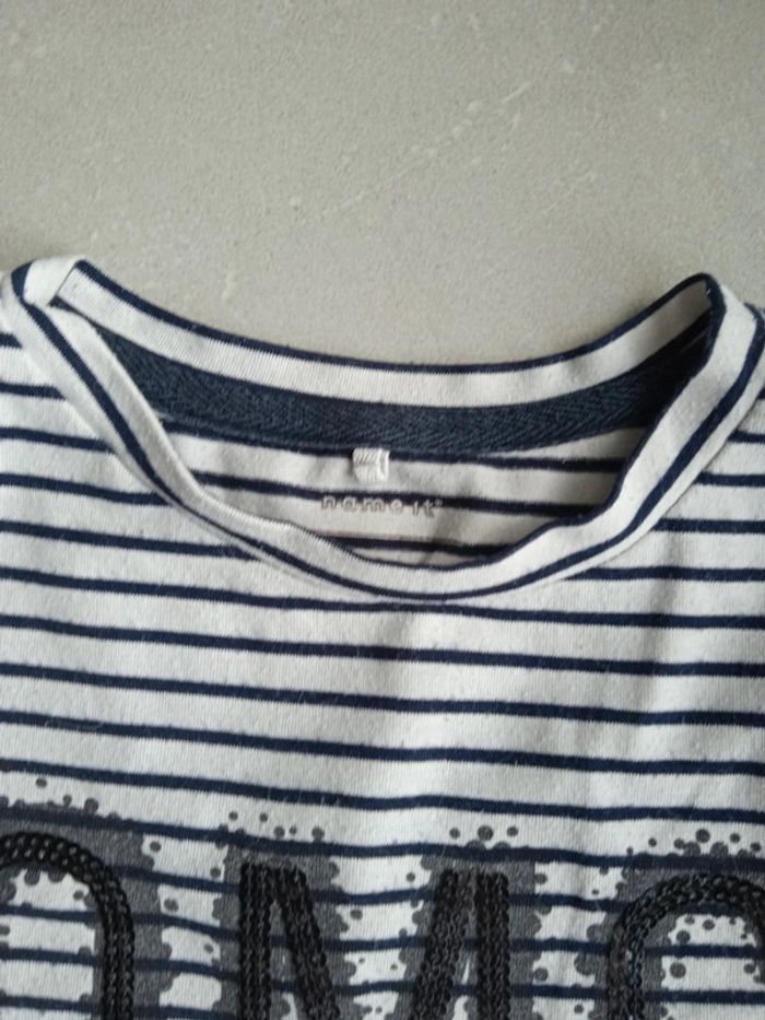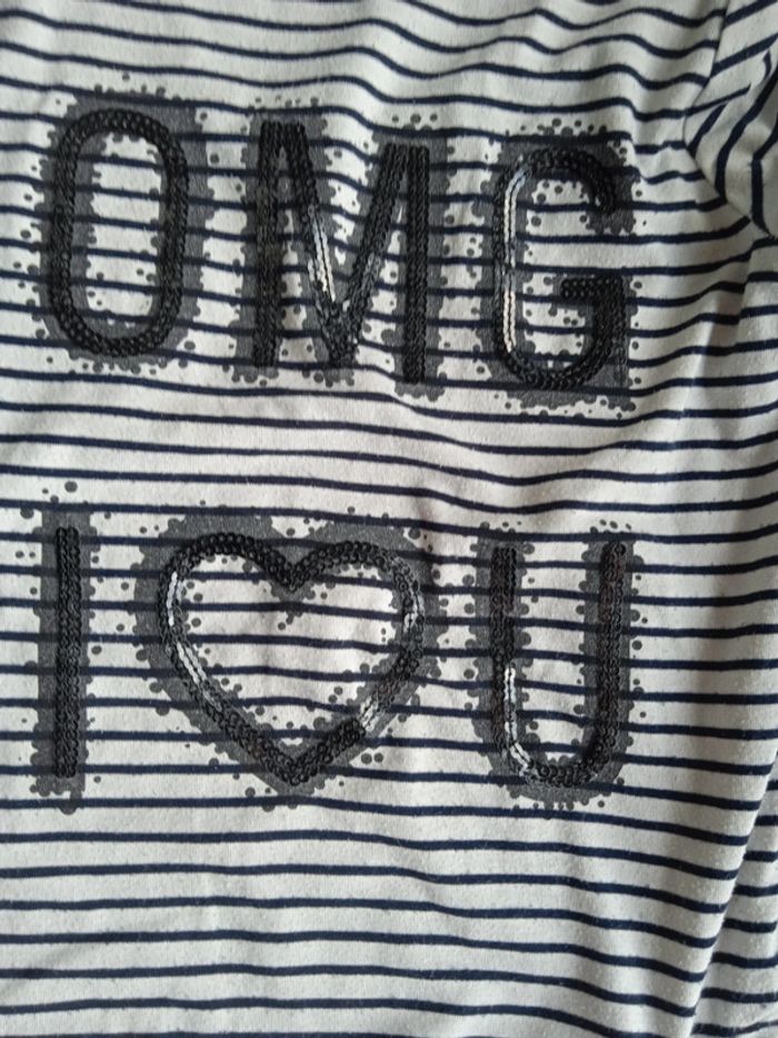 T-shirt style marinière blanc rayé bleu marine sequins noir