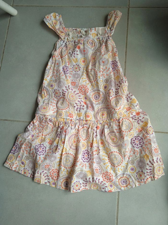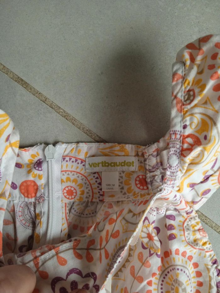 Très jolie robe Vertbaudet le bas se décroche pour ne faire qu'une tunique blanche motif corail violet et orange, fermeture éclair au dos