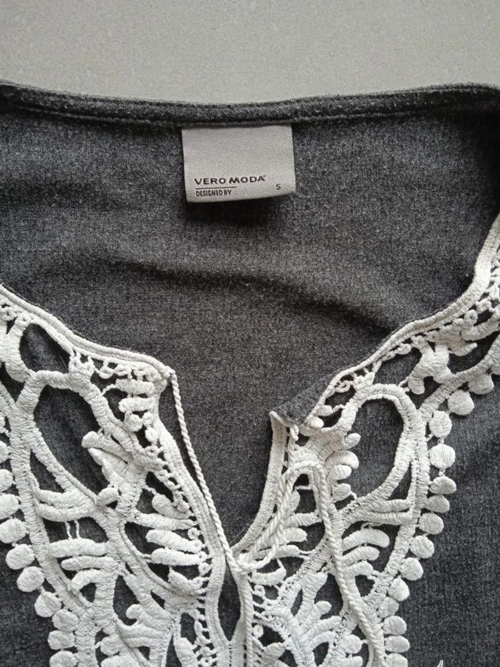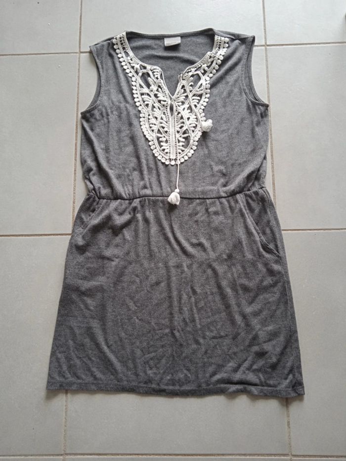 Très bon état fluide robe vero Moda grise motif macramé broderie sur le devant
