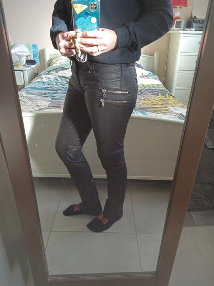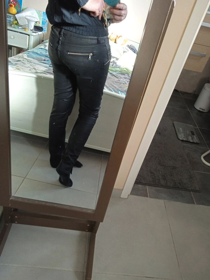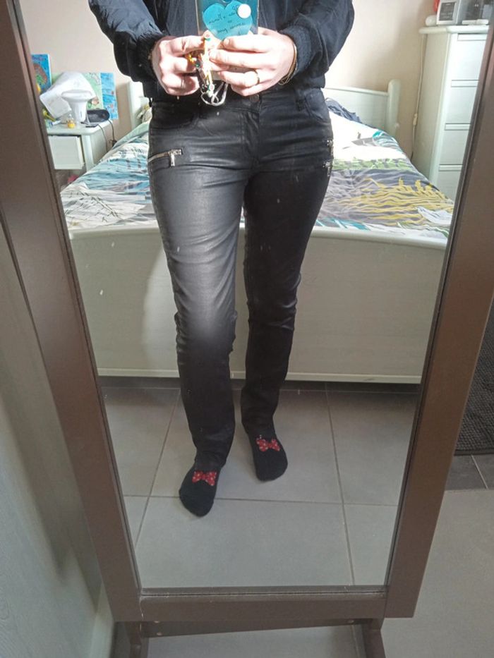 Très bon état pantalon enduit clim normal feat noir taille 38
