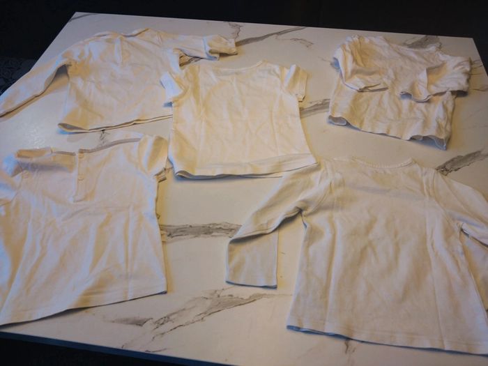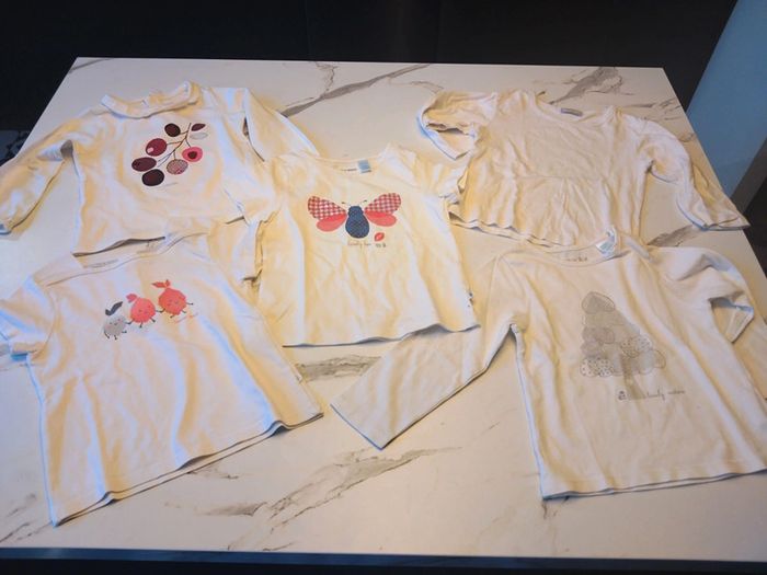 4 Okaïdi et un Verbaudet 3 manches longues 2 manches courtes Très bon état sauf le Verbaudet qui en bon état