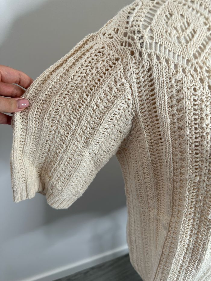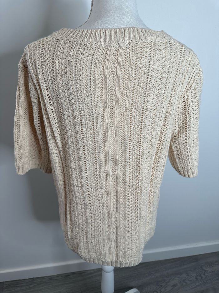 Pull en crochet tricot ajouré beige crème Damart T42/44 XL/XXL - photo numéro 5