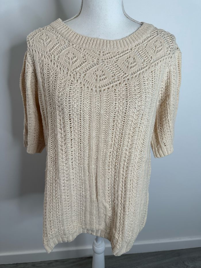 Pull en crochet tricot ajouré beige crème Damart T42/44 XL/XXL - photo numéro 2