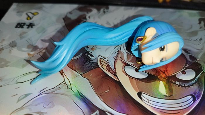 Tête de la figurine de Nefertari Vivi du manga One Piece. 8,5 cm de long (cheveux compris) Je ne trouve pas à quelle figurine elle appartient mais c'est du produit officiel de bonne qualité