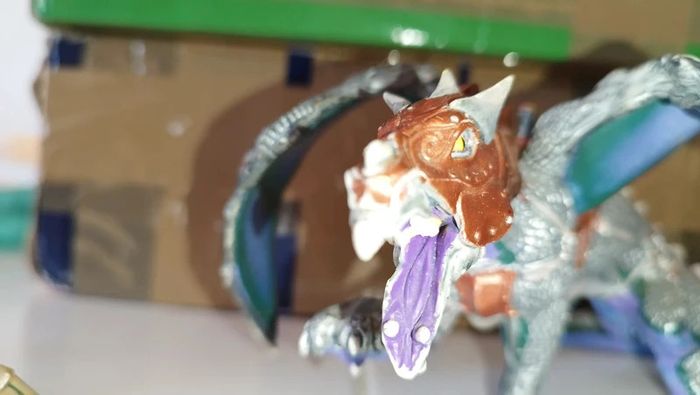 Lot de figurines de la marque Papo. Deux dragons Guerrier Entre 10 et 15 cm de haut. Sur le plus grand il manque un des fléaux, sur le deuxième il manque le feu qui sort de sa bouche.