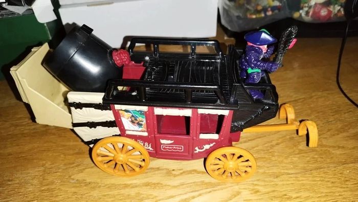 Carrosse + Figurine du conducteur (Cannonbal Coach) datant de 1996 fait par Fisher Price