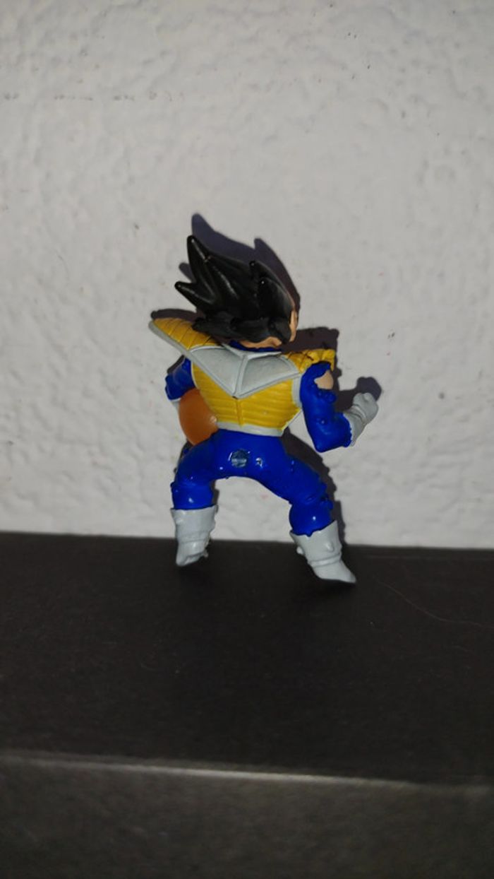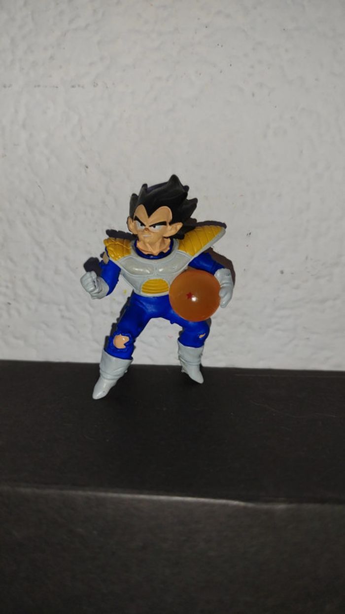Figurine Dragon Ball Z de Vegeta avec une boule de cristale Gashapon HG 6 cm. Il manque sons socle, il ne tient pas debout