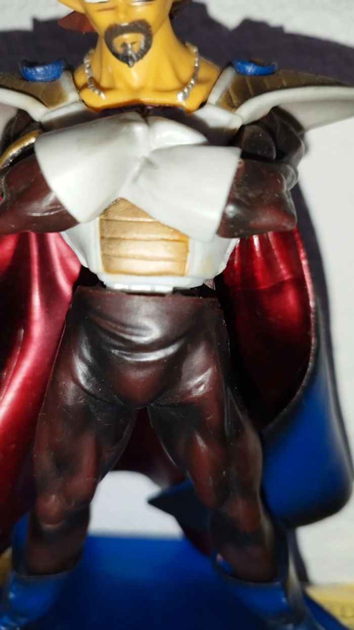Figurine Dragon Ball du Roi Vegeta (le père de Vegeta) 20 cm de haut. Il manque sa queue au centre de la figurine et un picot du socle est cassé.