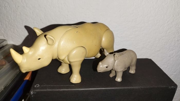 Playmobil Rhinoceros et son Bébé (le grand a jaunie)