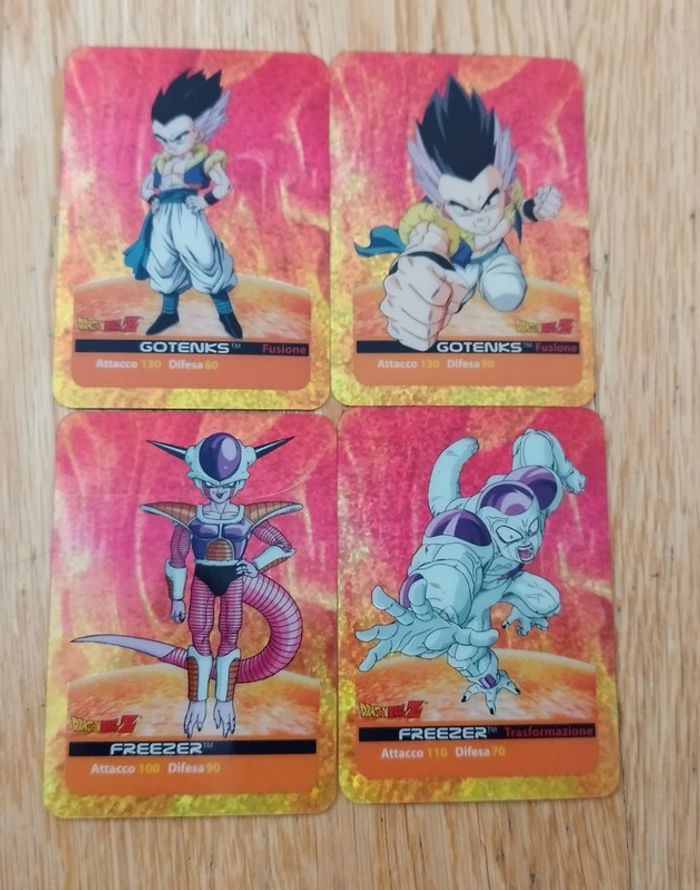 Lot de 4 cartes Dragon Ball Z de la collection Lamincard part 5 italienne.