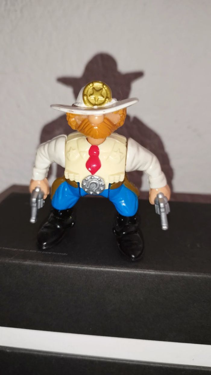Figurine du Shériff datant de 1996 fait par Fisher Price Quand on appui sur sa tête, ses bras se lèvent