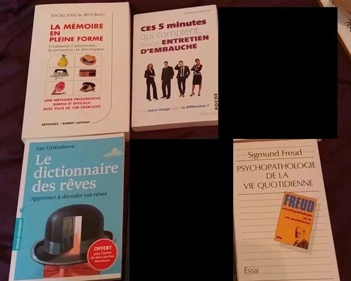 Freud psychopathologie de la vie quotidienne Ces 5 minutes qui comptent dans un entretien d'embauche La mémoire en pleine forme rotrou Le dictionnaire des rêves Uyttenhove Possibilité d'acheter à l'unité.