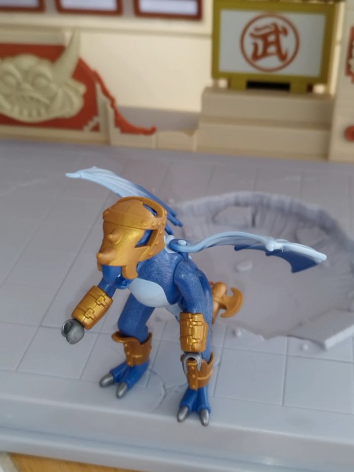 Playmobil Figurine Dragon Bleu Casque Armure Doré Ailes Guerrier 5464 Figure