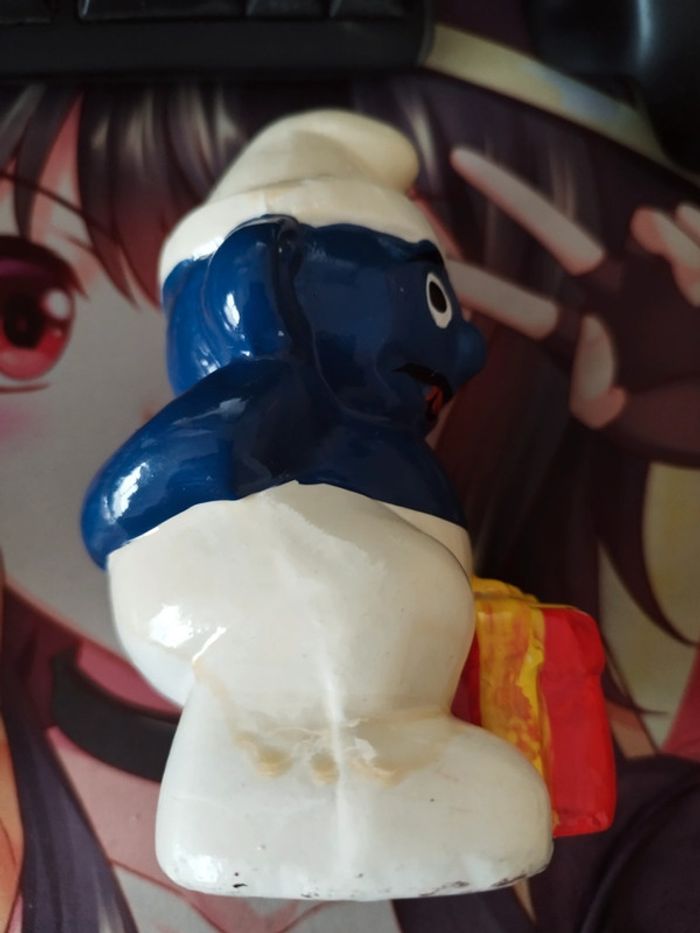 Ancienne Tirelire Céramique schtroumpf smurf vintage cadeaux peyo rare - photo numéro 4