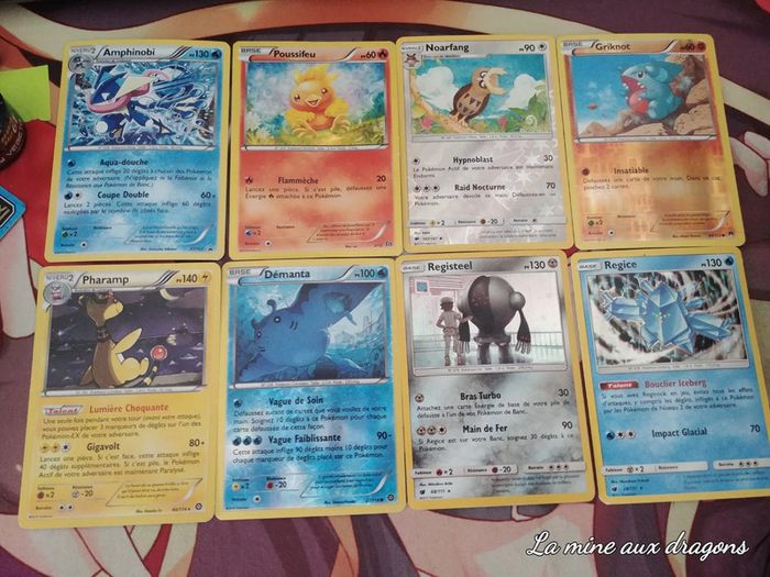Lot cartes Pokemon Amphinobi XY162 Poussifeu 2/12 (assez abimé) Noarfang 107/147 Griknot 68/122 Pharamp 40/114 Démanta 27/114 Registeel 68/111 Regice 28/111